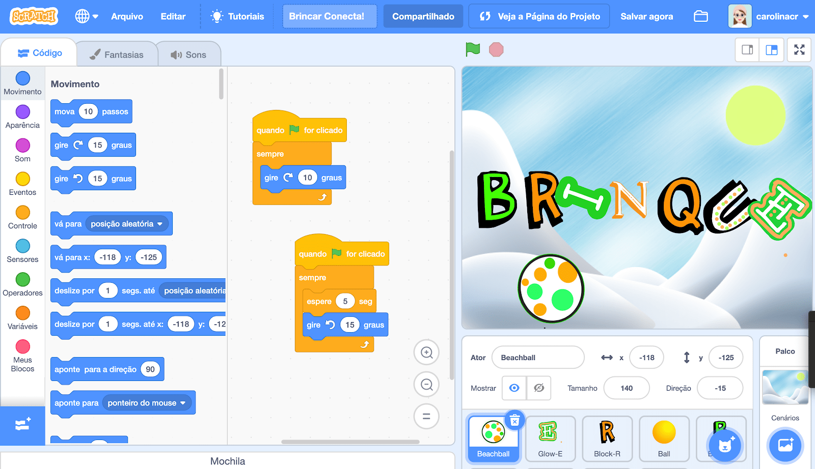 Se quiser, você também pode acessar e imprimir os Cartões Scratch, com dicas para programar diferentes ações para cada letra da palavra: girar, mudar de cor, pular, deslizar e até mudar de tamanho.